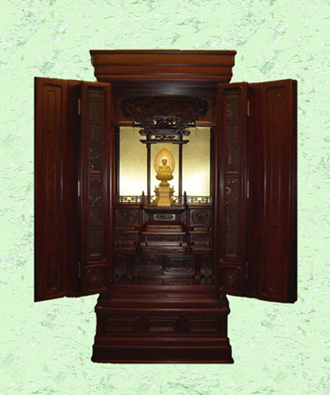 電装付き(発光ダイオードー照明)でご本尊を照らす事ができます。横板・後板